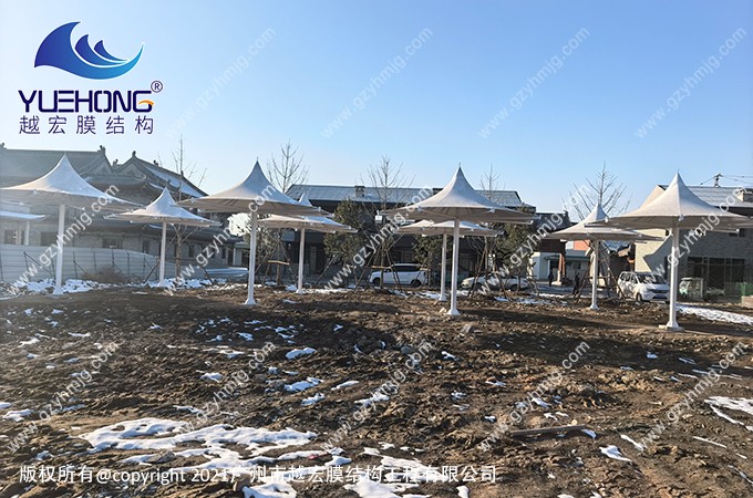 景觀膜結構是一種依托柔性膜材與預應力結構構建的建筑體系,通過張力自平衡實現輕質大跨空間覆蓋。其采用透光率10%-15%的涂層膜材,景觀膜結構適合很多場景,與傳統建筑相比,景觀膜結構更貼近生活中需要的一種建筑美感,功能性、耐用性強、滿足景區需要的遮陽遮雨場地。營造活動空間的功能,提升了環境品質和舒適度。